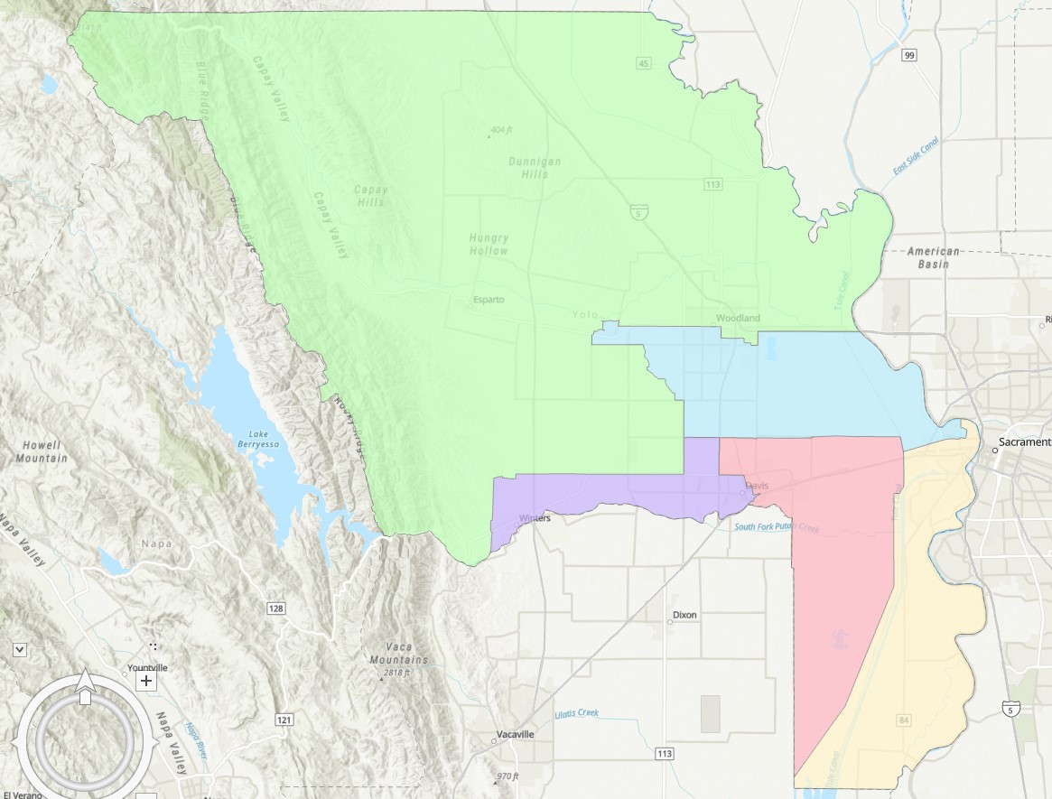 Description: These boundaries were derived from "heads-up" digitizing based on the Census Boundaries. The best attempt was made to translate the boundary lines to the base map boundary lines of Yolo County. Interpretation was necessary in many places where Census boundary lines did not match any "real world" lines.